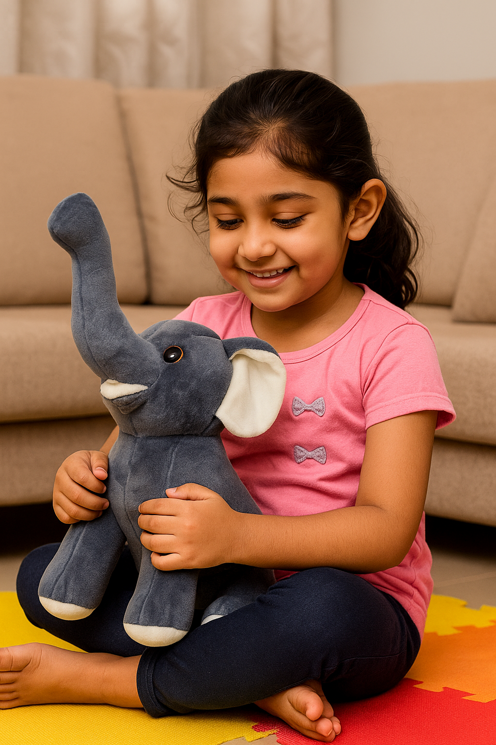 K K Toys Creations premium quality Sitting Elephant Soft Toy Impeccable crafted with the highest quality materials, the KK Toys Premium Sitting Elephant boasts a luxurious plush texture, ensuring an indulgent and irresistibly soft feel. There are many soft toys which are very hard but our elephant is very soft which children like to play with.KK Toys Creations premium quality Sitting Elephant Soft Toy Featuring an endearing sitting pose and a charming expression, this 27 CM Grey Elephant Soft Toy captures the hearts of both boys and girls, making it an enchanting addition to any playroom or nursery.Sitting Elephant Soft Toy is very easy to wash. Even after washing, the shine and quality of our elephant does not change at all. Life with kids can be unpredictable, but cleaning up is a breeze with the Premium Sitting Elephant. Maintain the plush toy’s pristine condition, ensuring it remains a beloved companion through all the adventures.Elevate celebrations with the perfect birthday present. The AUDBOT Sitting Elephant is a thoughtful and cherished gift, creating smiles and joy for birthdays, baby showers, or special occasions.Premium quality Sitting Elephant Soft Toy With a size of 25CM, this Sitting Elephant is the perfect balance of hug gable and portable, ready to bring joy to any child’s playtime or bedtime routine.