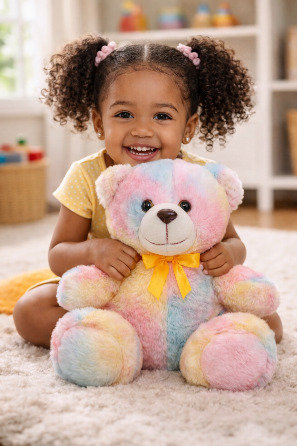 Pastel Rainbow Colors: Beautifully blended shades of pink, blue, cream, and yellow for a soothing yet playful look